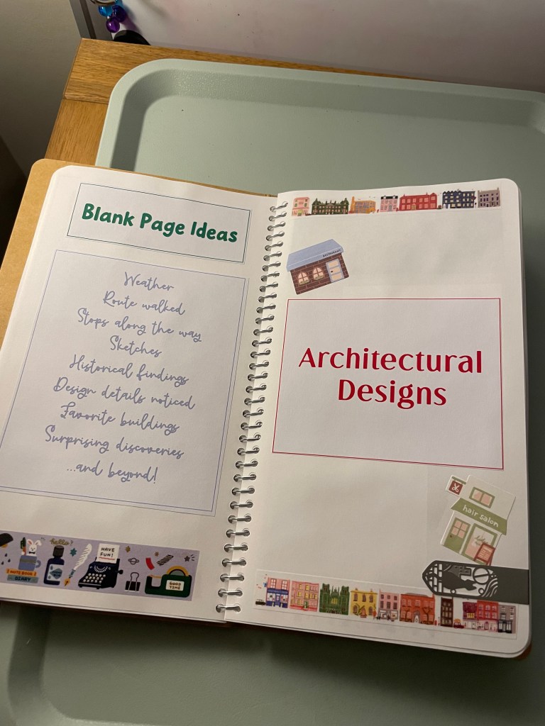 For Christmas this year, I decided to get my mom in on the urban observation action by making her a “DC neighborhood passport.” The journal features a visual glossary to explain different design elements (now I know what cornices and fanlights are!), overviews of 14 of the most common architectural styles in the District (Queen Anne! Mid-Century Modern!), and descriptions of 28 neighborhoods she could explore to see these styles in action. It also featured a custom map made by my partner, stickers galore, boatloads of washi tape, and a cherry blossom and rowhouse-themed ”date visited” stamp.